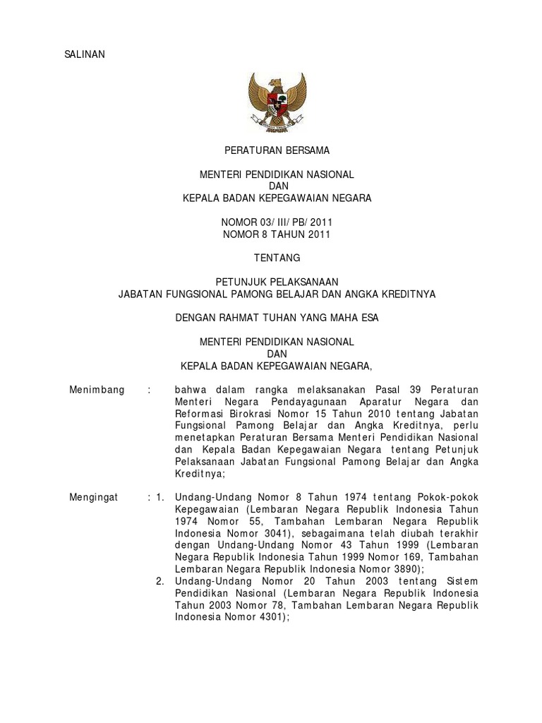 Peraturan Bkn No 8 Tahun 2011 Petunjuk Pelaksanaan Pamong Belajar from image.slidesharecdn.com Informasi terkini tentang drakor terbaru, loker, lifestyle dan teknologi. Koleksi admin mengenai contoh soal uji kompetensi pamong belajar. Contoh soal skb guru yang kami sajikan terdiri dari soal kompetensi pedagogik, diantaranya untuk mengukur pemahaman guru mengenai teori belajar, perkembangan peserta didik, strategi pembelajaran, serta kompetensi teknis dalam hal evaluasi pembelajaran. Pamong belajar adalah pendidik dengan tugas utama melakukan kegiatan belajar mengajar, pengkajian program, dan pengembangan model pendidikan nonformal dan lnformal (pnfi) pada unit pelaksana teknis (upt. Melansir laman jabatan fungsi (jabung) kemendikbud, jumat (9/10/2020), menyebutkan proses pendaftaran pamong belajar skb dan penilik akan dilakukan secara. Pamong belajar skb merupakan tenaga kependidikan upt dinas pendidikan dan memiliki posisi strategis dalam pelaksanaan program pnf. Yang mana admin bagikan dalam bentuk online dan pdf yang bisa sobat download secara gratis. Berdasarkan permenpan rb nomor 15 tahun 2010 tentang jabatan fungsional pamong belajar, bahwa yang dimaksud dengan:.