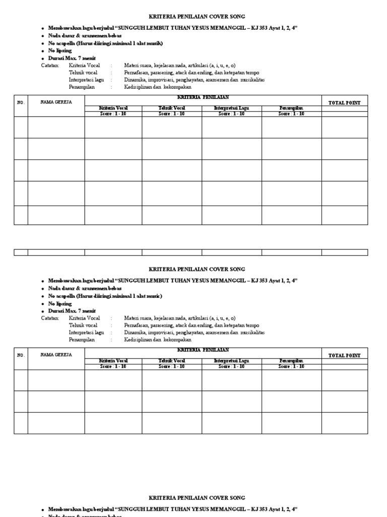Analisis tapisan ini menentukan tiga kriteria yang dinilai dari setiap alternatif gagasan yakni kontribusi, kemurahan dan kelayakan. Panitia akan memanggil nama dan asal sekolah maksimal 3 kali. Dec 10, 2020 · penilaian merupakan kegiatan mengambil keputusan dalam menentukan sesuatu berdasarkan kriteria baik dan buruk serta bersifat kualitatif. Mar 05, 2017 · apabila ada kesamaan nilai pada lomba, maka akan diprioritaskan dari urutan seperti tercantum pada kriteria penilaian. Tajwid, makhraj, irama, pengaturan nafas, serta adab atau sikap peserta dalam membaca qur'an, terakhir, setiap peserta yang tampil, tidak usah mengucapkan salam.