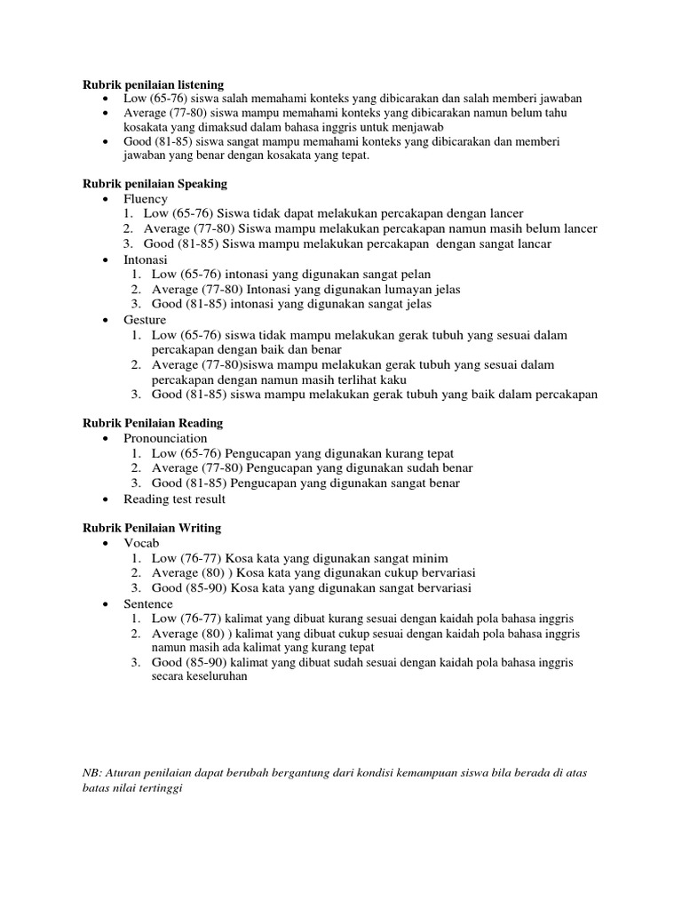 Rubrik penilaian bahasa inggris smp kurikulum 2013.